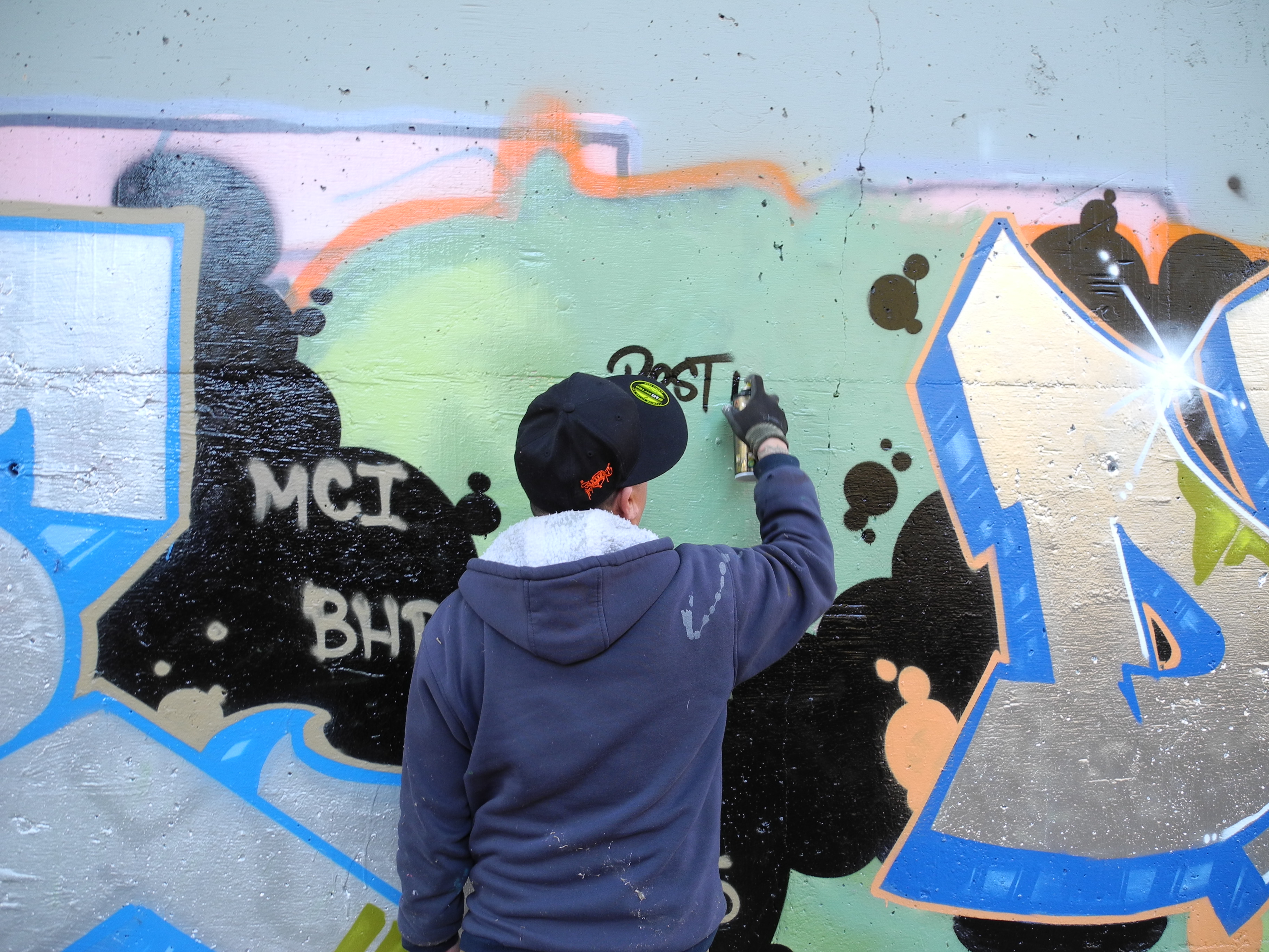 The first piece of the year was an early morning session of silvers with my homies Duel and Ache. We met up early, went into the spot rocked our silvers real quick and bounced. Nothing spectacular, but it was cool chilling with these two guys and getting warmed up for the year. I had to add the trademark character just to give my piece a little bit extra flavor. I told Ache no soft edge styles for this mission (haha) and Duel rocked the tribute to piece for Demz, who if you hadn’t heard, was ran over by the cops in Miami during Art Basel.
