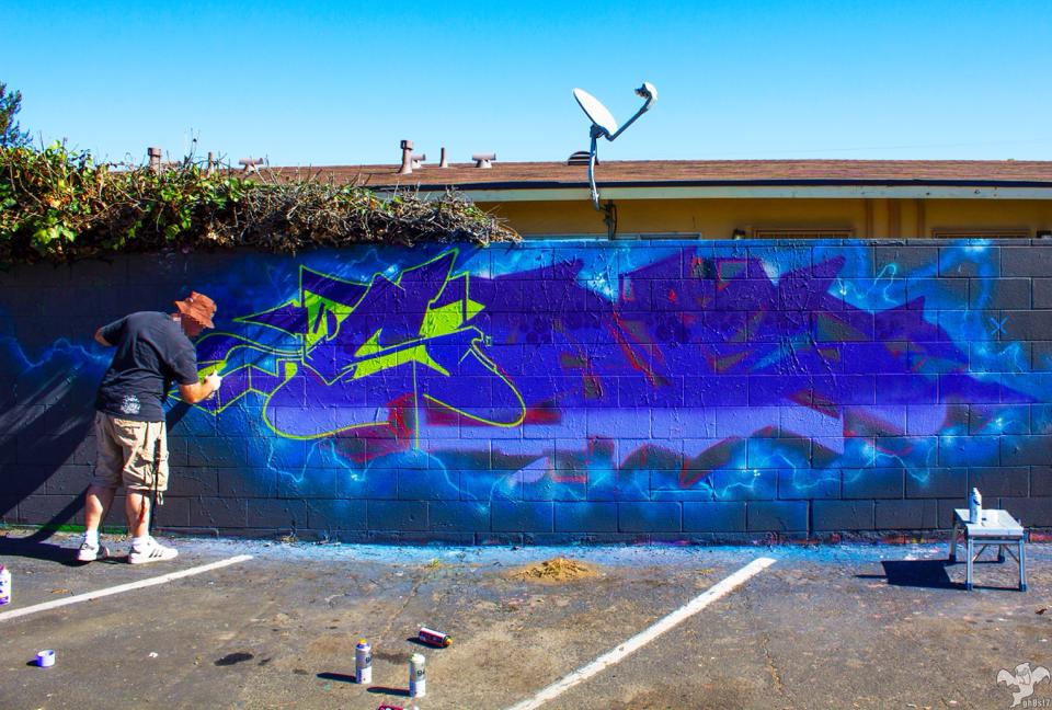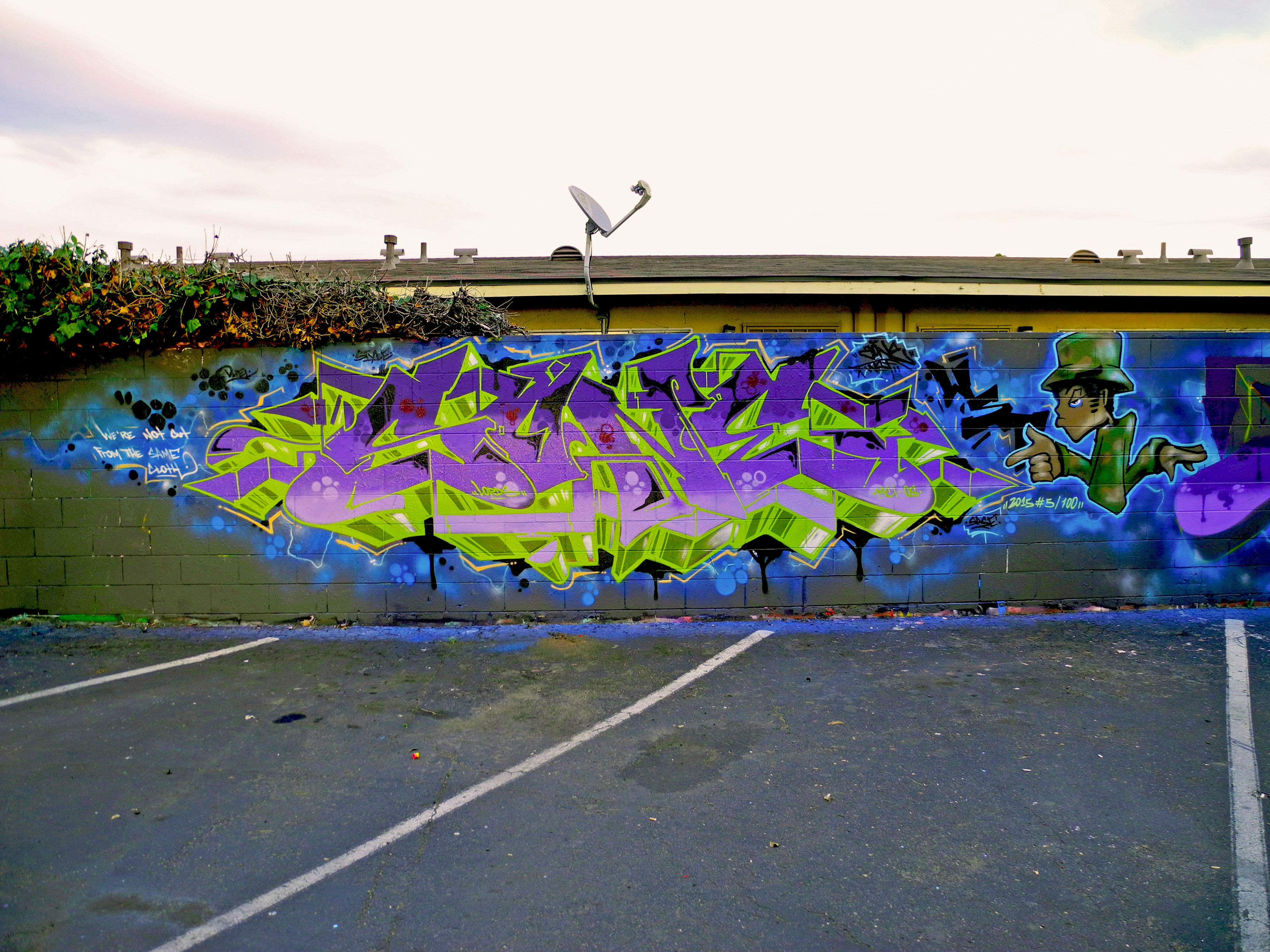 This one’s a recent favorite. It was done for a BBoy event. Daze Roc has a piece to the right and there’s also some video footage taken, that I’ll have to share once I get the flicks from Daze, so stay tuned for that footage. I like this spot because its visible from the main road, and should get a lot of exposure.