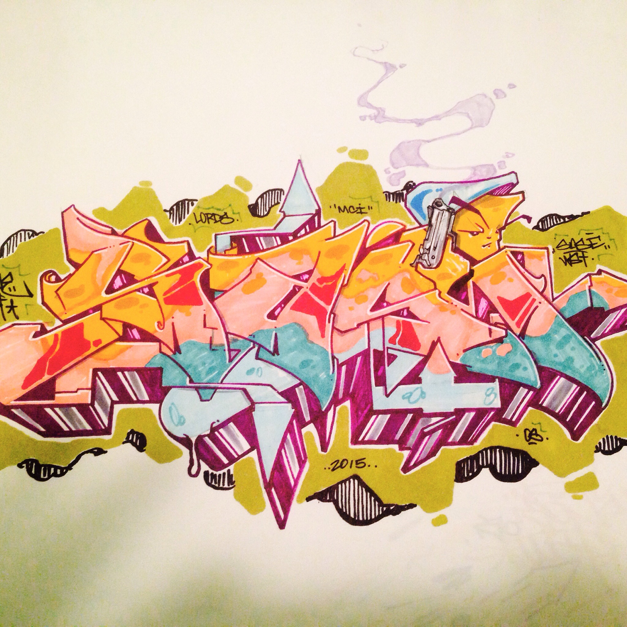 Rocked this one the day after Valentines day, A dedication piece to Sasi. This one was fun. My partner Daze Roc showed up and helped out with the background and glowing Force field. This spot was up on a rooftop of a business that is closing shop. There was a team of tweakers up there collecting up a bunch of scrap metal the whole time. Interesting. Here’s some pics of the initial sketch piece and then colored sketch.