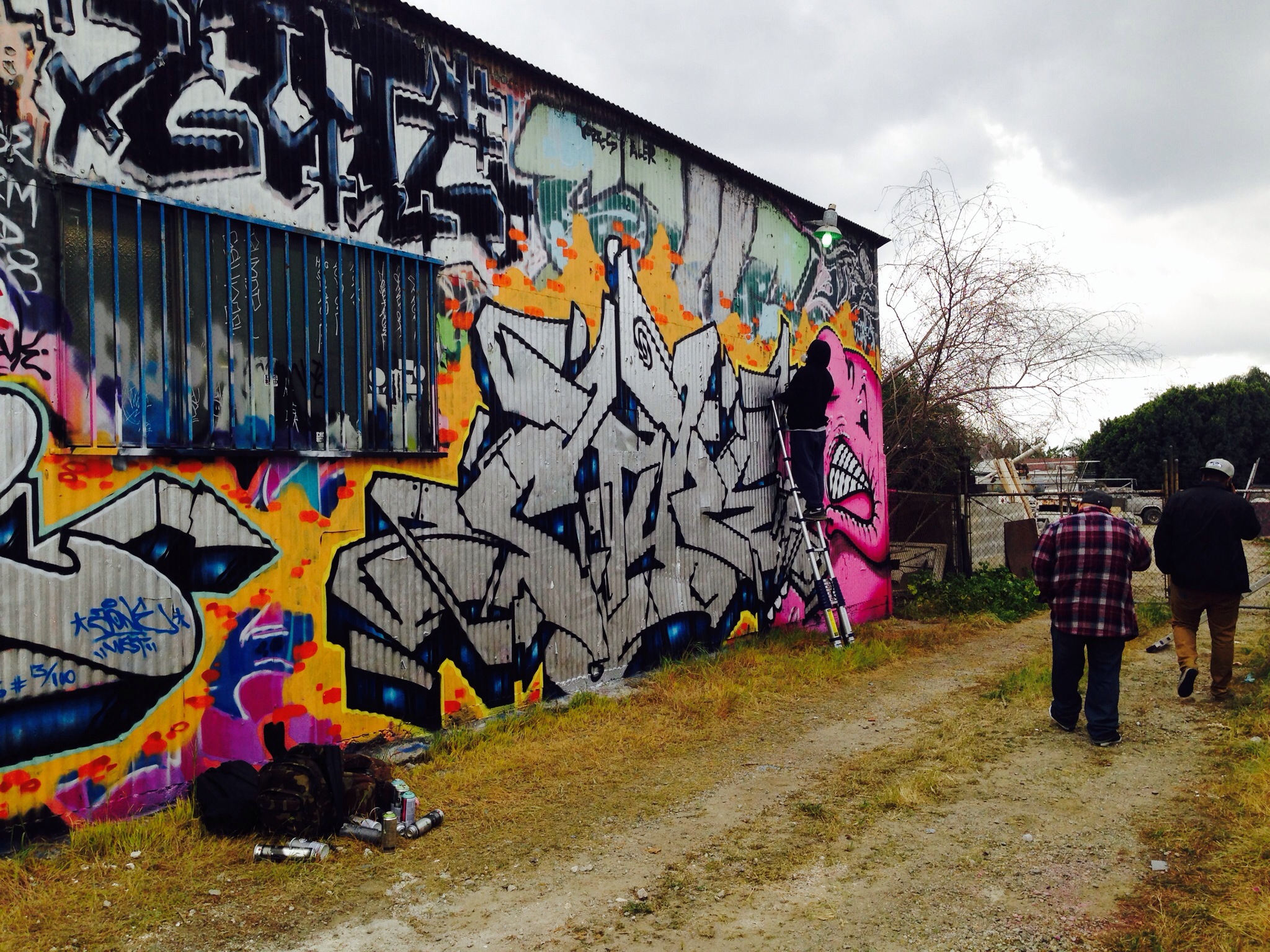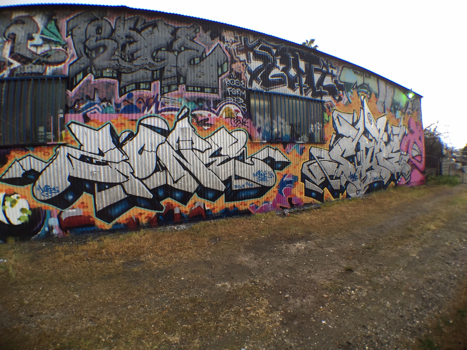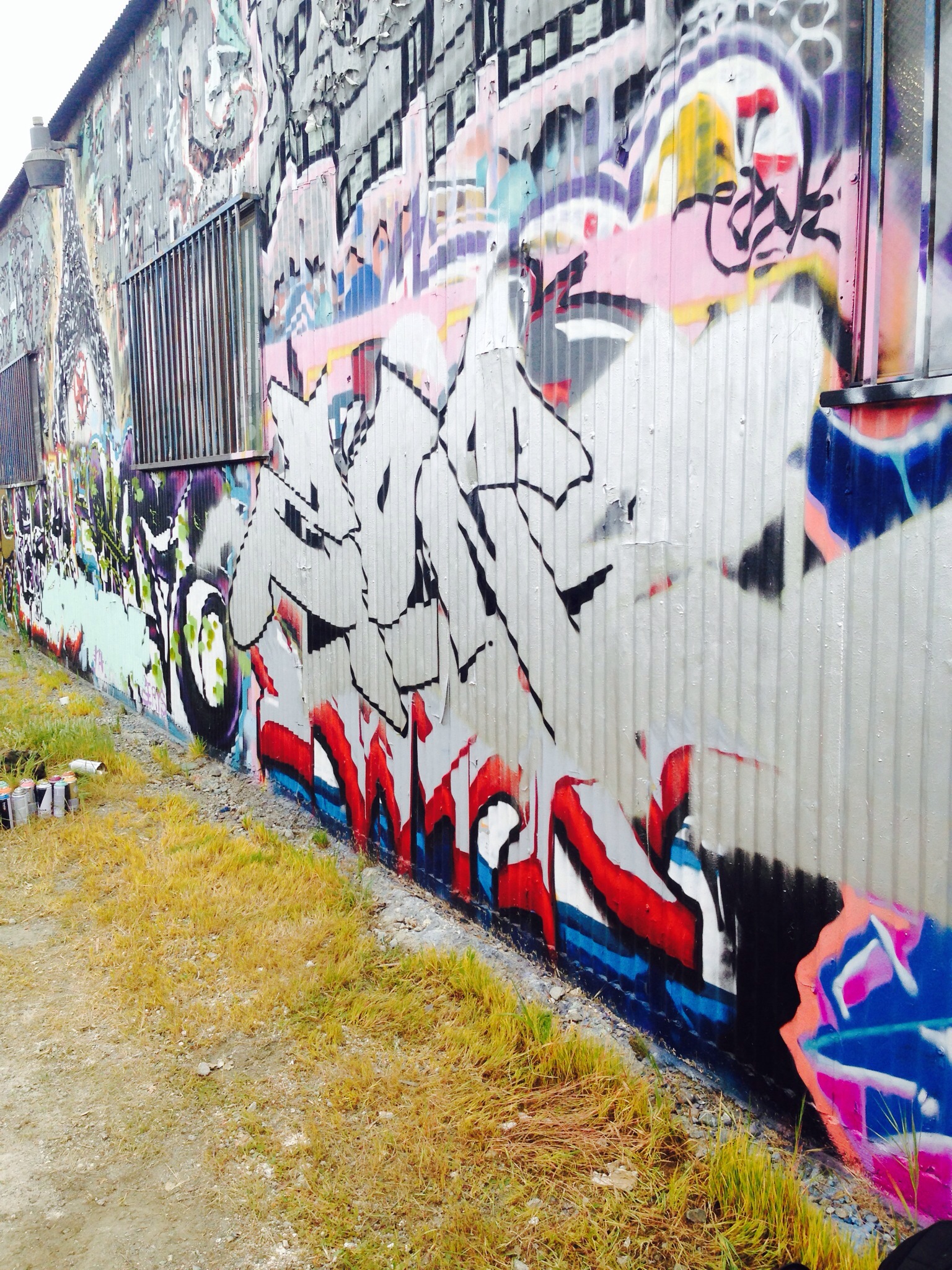 My partner Style and I linked up with Angel Once (the angry Elephant) and rocked this metal wall. I used to hate on corrugated metal, but I enjoyed this one. The lines look wavy close up but. when you step back they kinda manically straighten out. Painting on a larger scale helps I think. Definitely down to rock more corrugated surfaces.