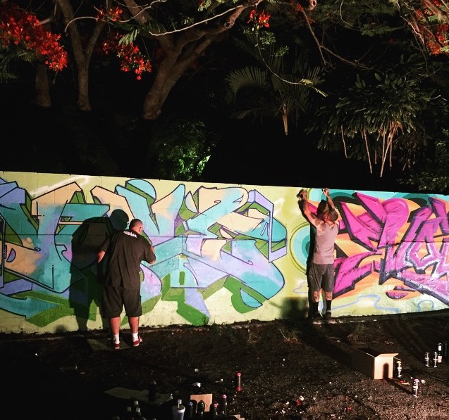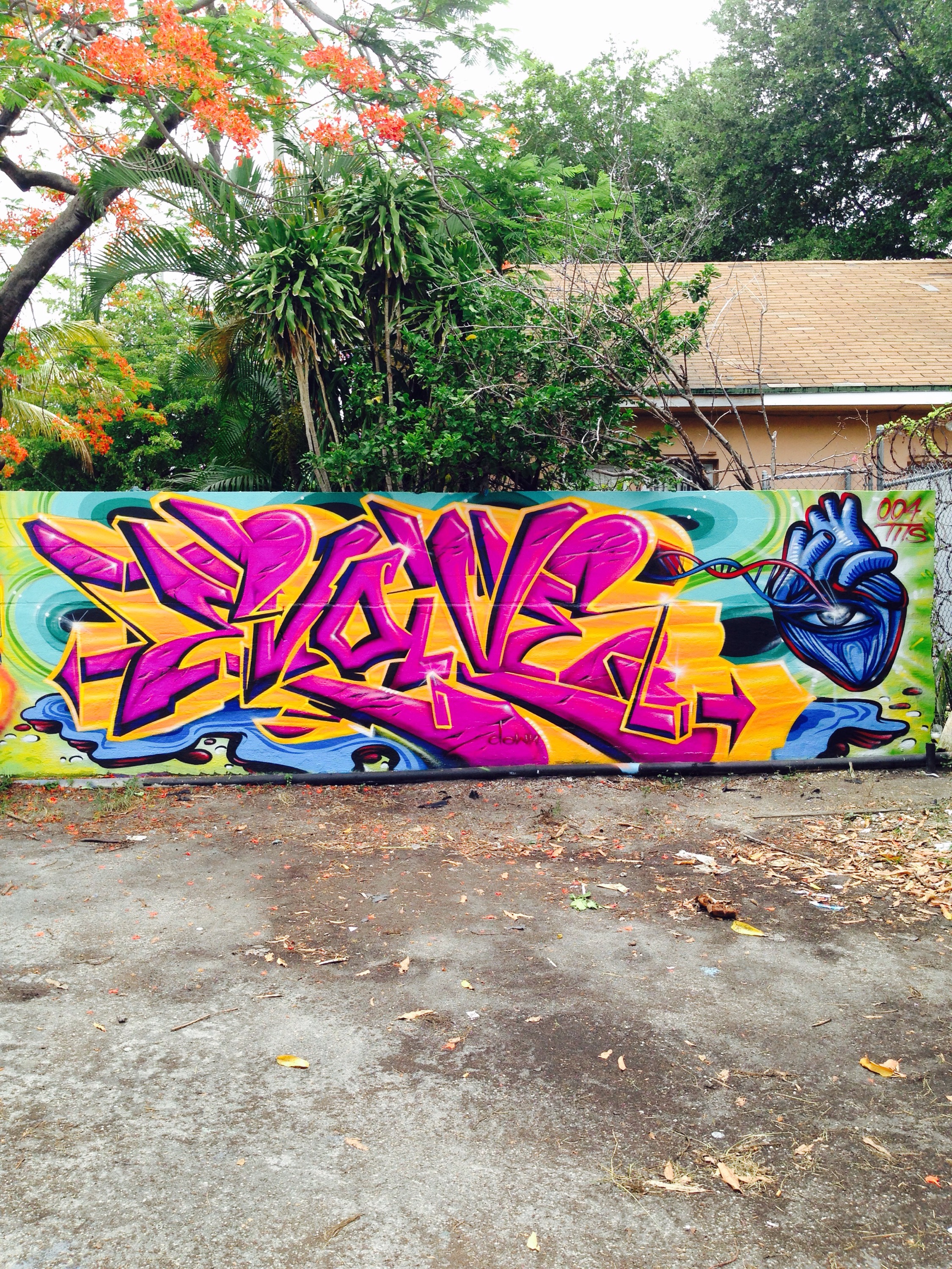 This battle was unique in a sense that we were both painting the word “evolve” and not our names, although I did sneak my name into my piece in a subliminal way. We worked during the Wynwood Art Districts Art Walk event that goes down on the 2nd Saturday of each month.