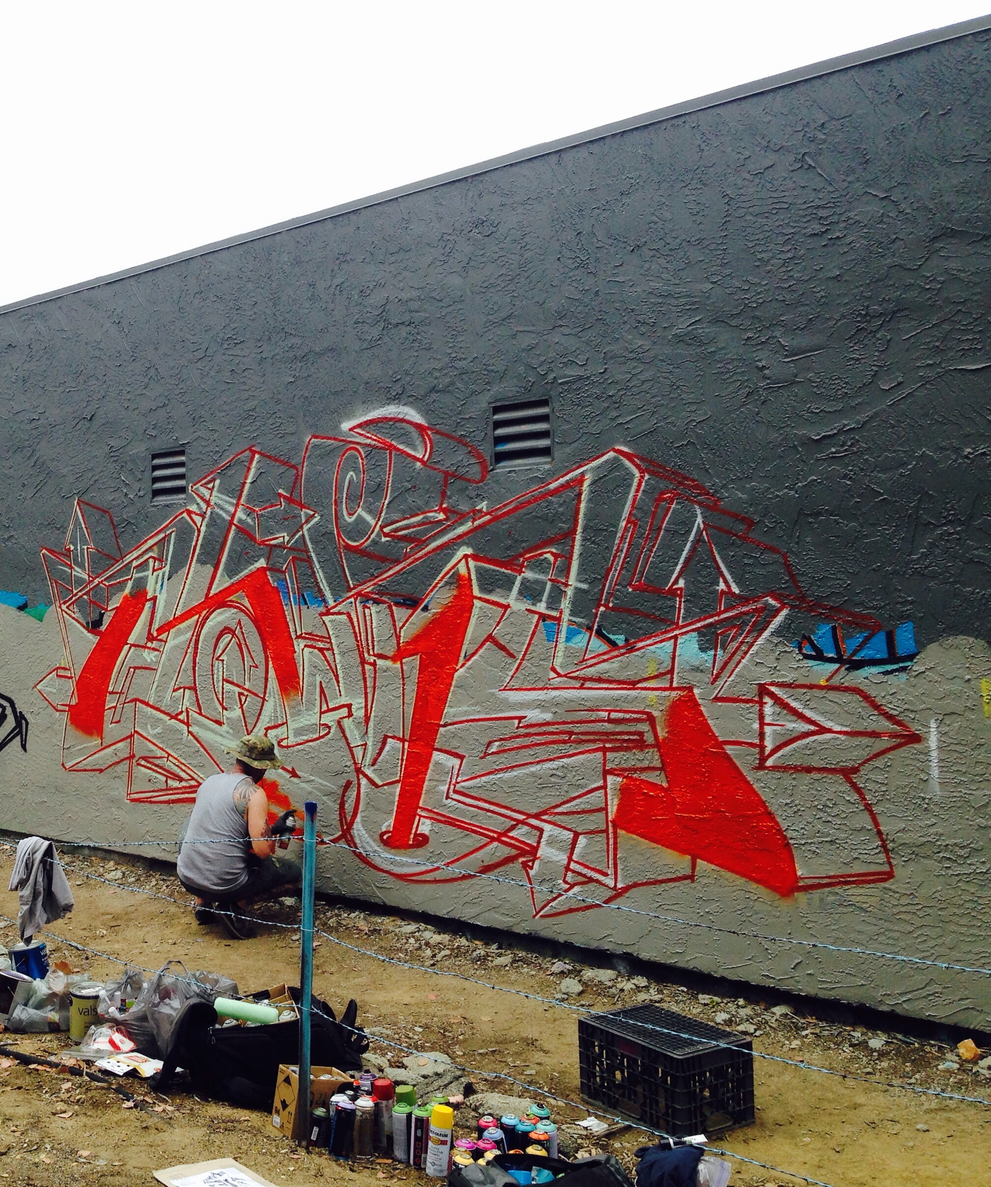 My piece was a throw back of sorts, working some styles and techniques I saw Quasar do back in the late 80’s with my own twist of funk. I used all brands of scrap cans in my fill and outlined with an Evolve Crude Oil black and about a quarter can of Evolve silver used in the 3D. See you out there..