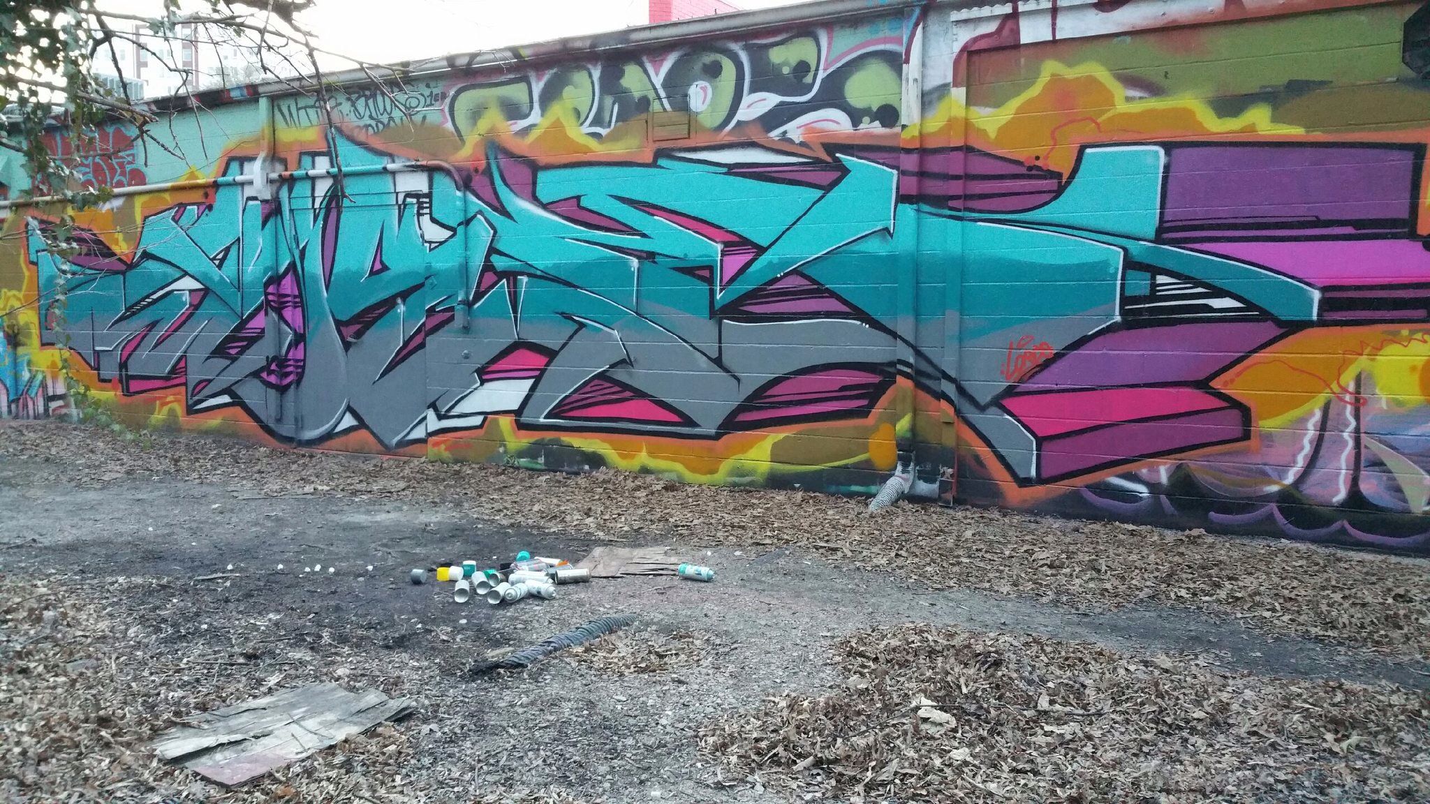 The homie Arest and I traveled to this trackside spot along the Amtrack passenger train line for a morning session. Arest used all Rusto to include the new Magenta for his outline. I followed suit and used the same rusto colors for my fill but outlined with a similar color Ironlak. I don’t have the patients to outline with Rusto so props to Arest. This was a good session.